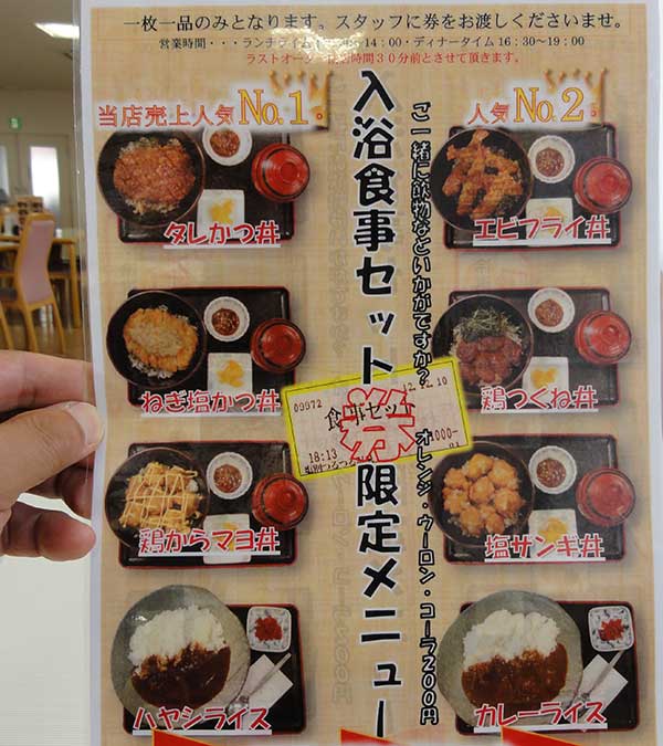 心と体を癒すためのレストラン白樺によって、限定メニューの入浴セット券で入浴と食事を楽しんだ。このセットを使うと、入浴が200円程度になり、ラッキーなセットです。