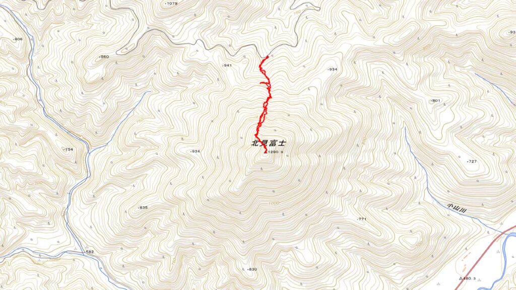 山頂から数十メートルに踏み後を確認できるものの、下山ルートも確認できないまま駐車地点にもだったが、倒木の乗り越えなどが伴い体力の消耗が激しい。