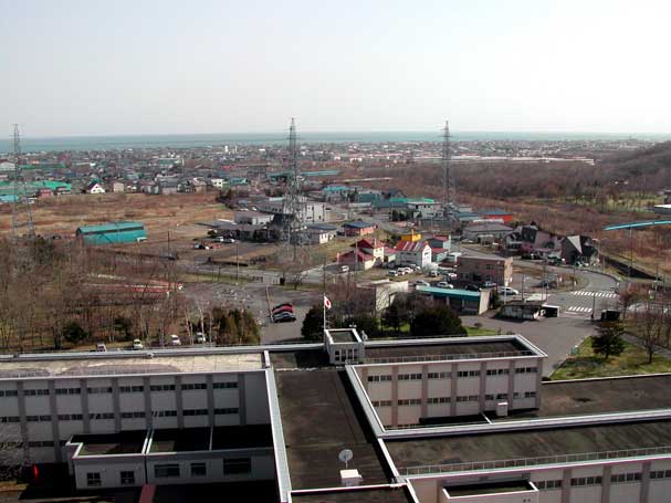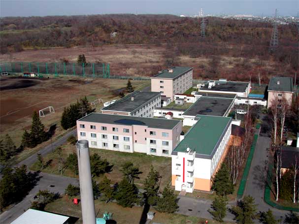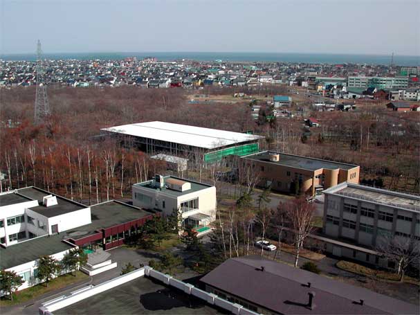 高専中央から南東の遠望です。中央白い屋根は、アイスホッケーリンクです。右手奥のアパートの様に見えるのは、緑陵中と南高です。