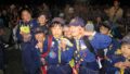 高専の東方向にある寮とグランドです。右手前で縦に赤いラインが有るのは、出来たばかりの女子寮です。5月の連休だと言うのに、北西角のテニスコートは満員でした。