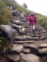 しかし、この登りが結構急斜面の連続です。重登山者あり、サンダルあり、異様な登山道です。