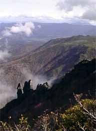 マネキ岩付近から層雲峡を望むと、きつい傾斜で山が立っているのがわかります。