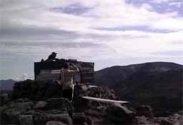 山頂には大雪山神社奥の院と監視小屋?が有り、首を出した監視員がおにぎりを頬ばりながら監視をしていました。