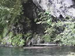 途中に洞穴(左の写真)が有りましたが、温泉では有りませんでした。右の写真は、大崎の先端です。大きな倒木が横たわっていました。