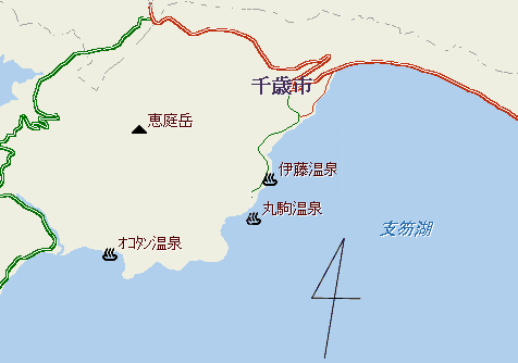 支笏湖には、湖畔の温泉街、伊藤温泉、丸駒温泉、オコタンのホテル(現在閉鎖中)の温泉がありま す。