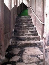 露天風呂は、浴場の更衣室で脱ぎ、長い廊下を抜け階段を下りるとある。露天風呂の所にも脱衣籠がはあるが、冬の間はちょっと寒いかもしれません。ちなみに露天風呂は混浴ではありません。