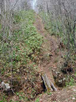 でも、舗装の車道を山頂まで登るより快調ですよ!皆さんならどちらを登りますか?ルートは、残雪期にまだありますよ。