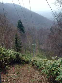 仕方がないですね。車が登れる傾斜なんて知れています。電線は尾根を真っ直ぐ傾斜に関係なく最短で登っていきます。