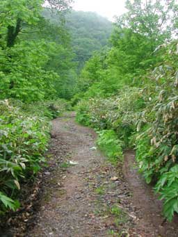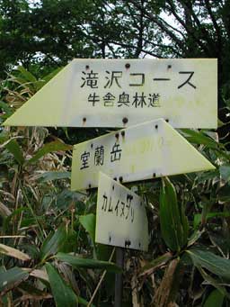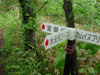 コルは、十字路となっていて、左がカムイヌプリ、右が室蘭岳、直進が水元沢を通って白鳥ヒュッテに行く。