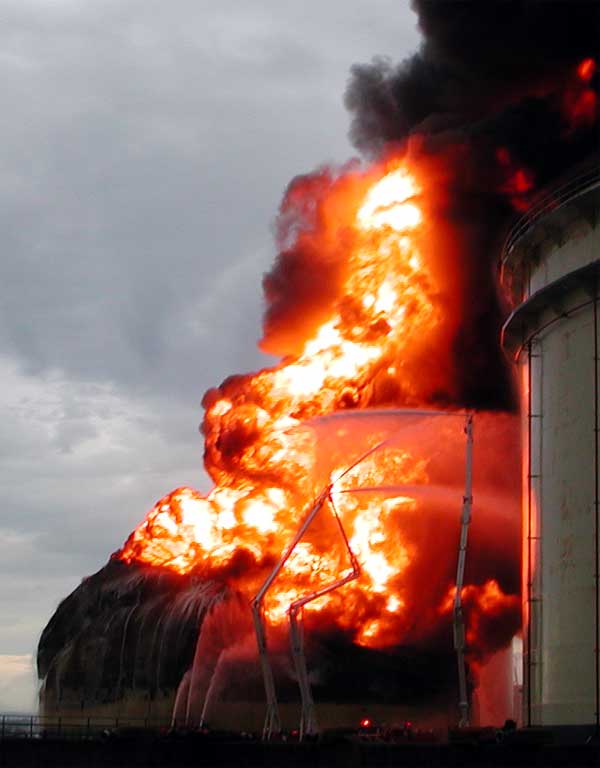 石油産業技術研究所の防災担当者は「ナフサはガソリンと同じ性質。タンク表面を泡消火剤ですっぽりと覆い、酸素の供給を絶ち切らないと火は消えない。タンク火災があれほど大規模になってからでは消火は至難の業。燃え尽きるのを待つしかない」と話す。