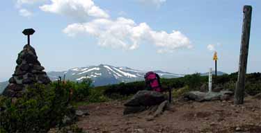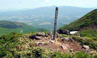 山頂の標識が有りますが、少々北に山頂があるようです。イワオヌプリはなぜ白いの?