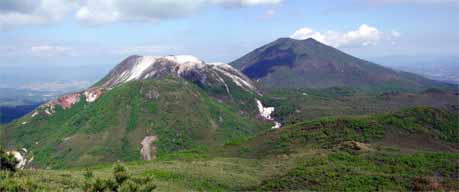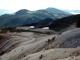 この山は、登りはじめから山肌が出ています。登りはほとんどが岩場です。お鉢に入ると砂地に澄んだ黄色の硫黄がちりばめてありました。