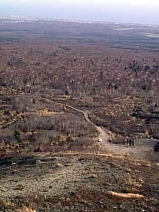 国道から車で40分、登り初めて三角点まで40分ですが、くれぐれも車を壊すことなく、また、熊に遭わないように。道路は白老営林署の管轄です。ゲートに鍵が有りますので営林署に確認してから行っ て下さい。ただし、鍵を貸してくれるかどうかは、わかりません。
