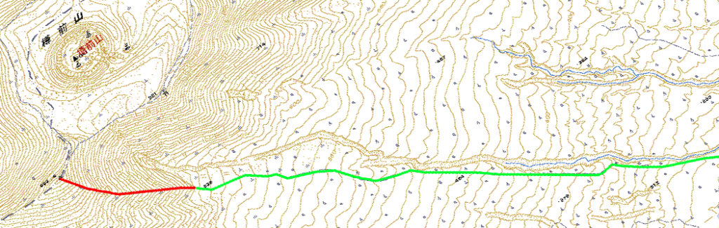 グリーンの道は林道ですが、数年前の台風によって荒れ果てていますので、車で行けるかは分かりませんが、オフロードのバイクでは赤ラインの登山口までは行けました。