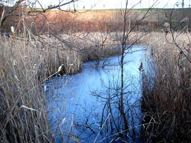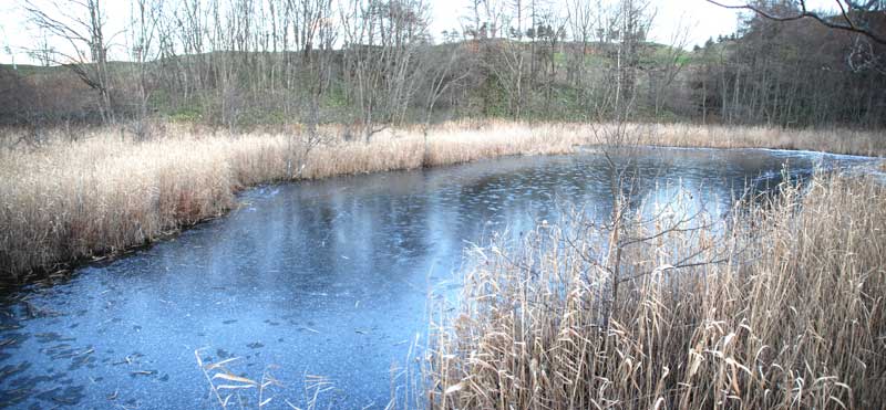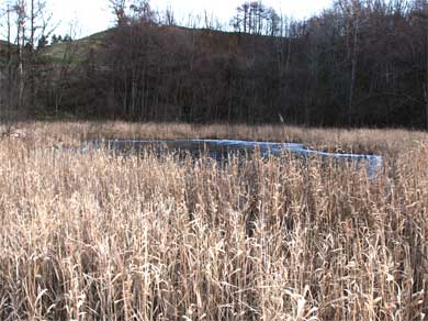 場所は、ナカイチ沼で説明した小さな鳥居のカーブの先になるが、野地の中に小さく隠れるように二つの沼があり、近づくのが大変である。今回は、初冬であったのでそれほど沼ることはなかったが、他の季節に行く場合は近寄れない可能性がある。