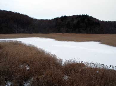 沼のなぎさ線は水中から陸にかけて植生が連続的に変化していく“エコトーン”(移行帯)をなしている。水中にはミツガシワやヒルムシロの水草類、その外側に向かってフトイ群落~ヤチヤナギ群落~ヨシやススキ、そしてその周囲はハンノキの低木林、更にその周辺にはコナラやミズナラの二次林が拡がっている。
