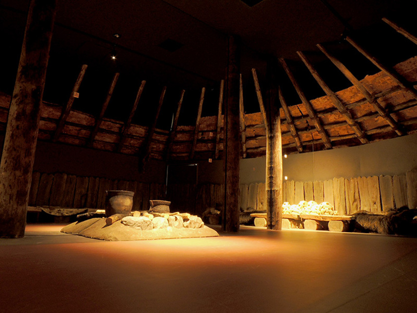 オホーツク人の住居(竪穴住居)の最も奥まった場所には、ヒグマの頭骨を積み上げた骨塚が作られていた。
