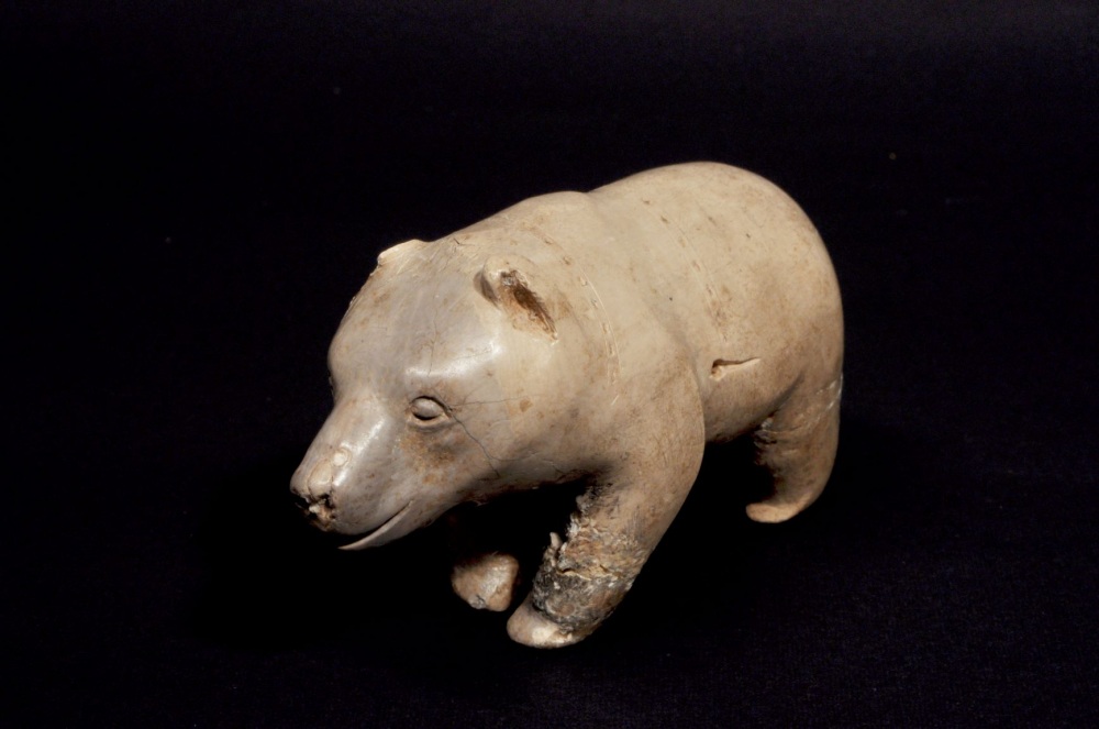 ・道具への投影: 骨や牙、土で作られたクマの彫像(動物意匠遺物)も多く見つかっていて、日常的にクマの意匠を身に付けたり、指揮棒などの儀式具に使用したりしていた。