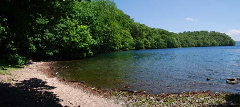 私の古い記憶では、ここ奥潭へは札幌冬季オリンピックまで遊覧船のみが交通の手段であったと思います。その後、オリンピックのために国立公園を削り支笏湖を一周する立派な道路がついたものと思います。