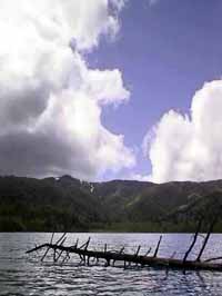 オコタンペ湖は、支笏湖よりも300m以上高い所にあり、水面の標高は572mで、登り口のある第2オコタンペ橋までは453号の分岐点から約5Kmあります。この辺は、ミズナラ、ダケカンバ、エゾマツなどの針葉樹、広葉樹の混交林に囲まれエメラルドグリーンの湖面が輝いています。