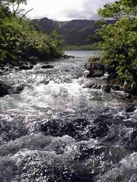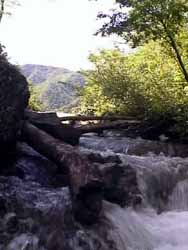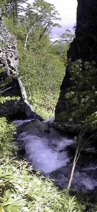 この川は水量が多く、流れがきついので渡るときには充分気をつけて下さい。流されるとそのまま滝から転落になります。その時点で終わりかもしれませんよ。