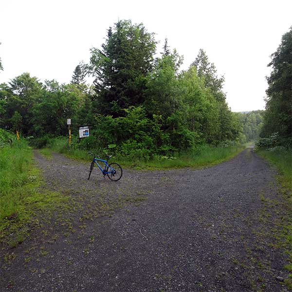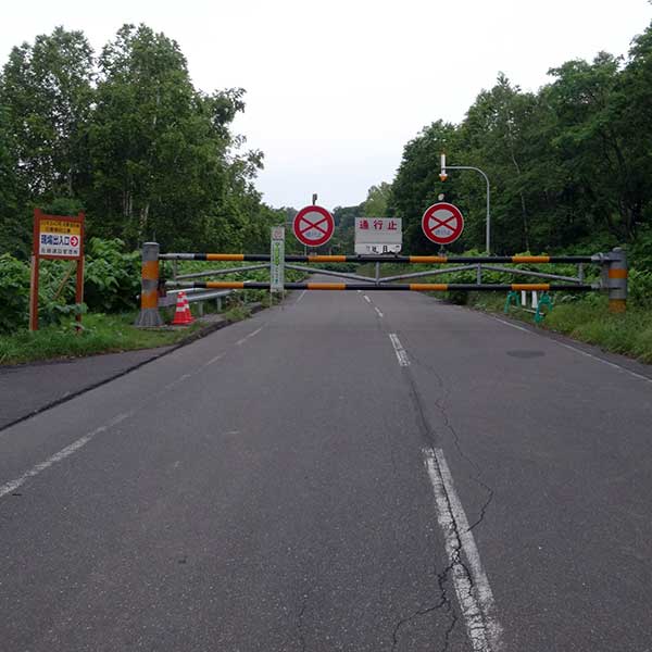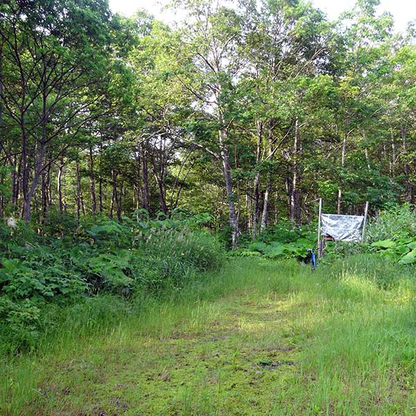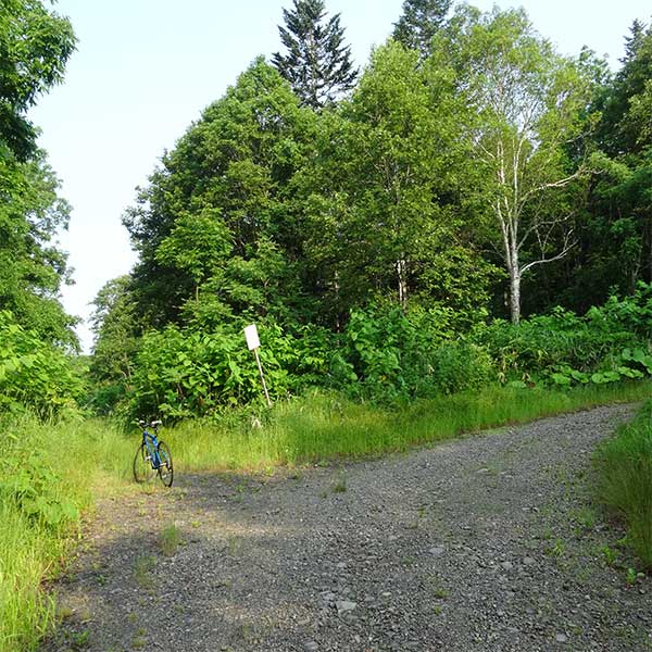周囲の舗装道路には、あちこちに新しい熊の糞が転がっています。常に周囲を威嚇する声を上げながら、ようやく林道の入口らしき場所へ。