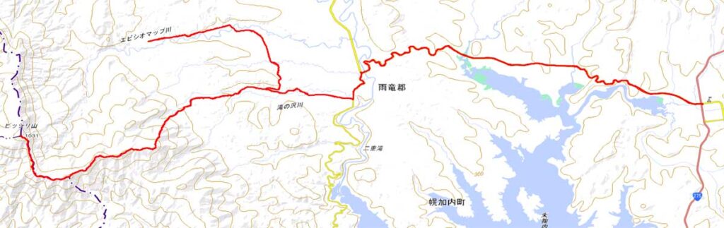 母子里郵便局[18.2km2:07]登山口[6.6km3:38]山頂[6.8km3:10]登山口[17.8km1:35]母子里郵便局 49.4km10:30 [60.4km11:45]