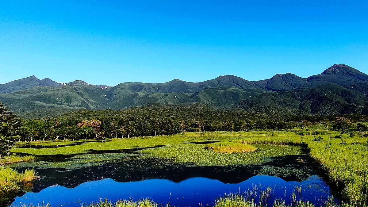 ウトロに到着した頃には、まだ太陽が高い位置にありました。そこで、まずは足慣らしに「知床五湖」を散策することに。高架木道を歩きながら、明日私たちが挑む知床の山々を指差して確認します。