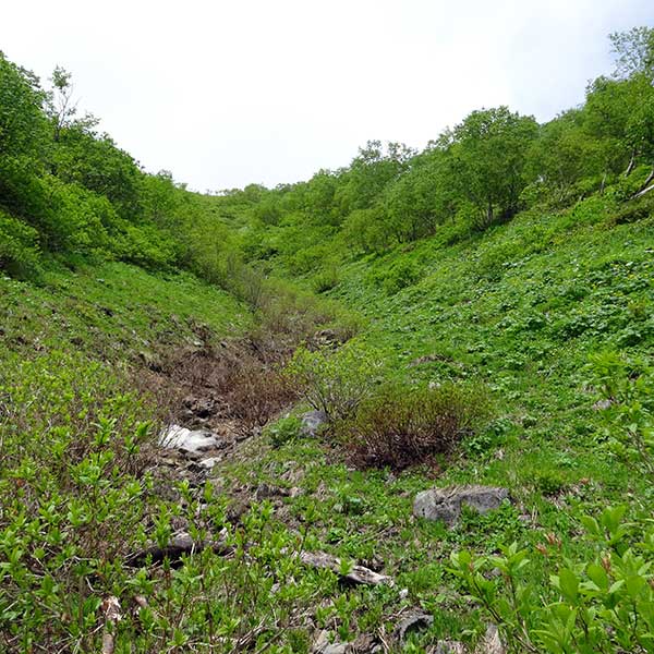 このルートは、多くは八の沢で幕営しての登山が主流で、一泊二日と余裕を持った登山が安全だ。また、雪渓が消えてから登山が最も安全と思う。