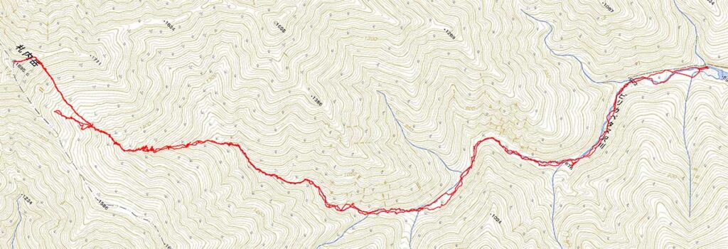 四ノ沢4:20‐4:37五ノ沢-5:06六ノ沢-5:45七ノ沢-6:03八ノ沢-6:22九ノ沢-9:46十ノ沢-10:12引返し-10:23十ノ沢-11:13尾根上-11:25山頂11:50-11:59尾根上-12:40十ノ沢-16:22九ノ沢-16:42八ノ沢-17:01七ノ沢-17:43六ノ沢-18:14五ノ沢-18:30四ノ沢-自宅23:05