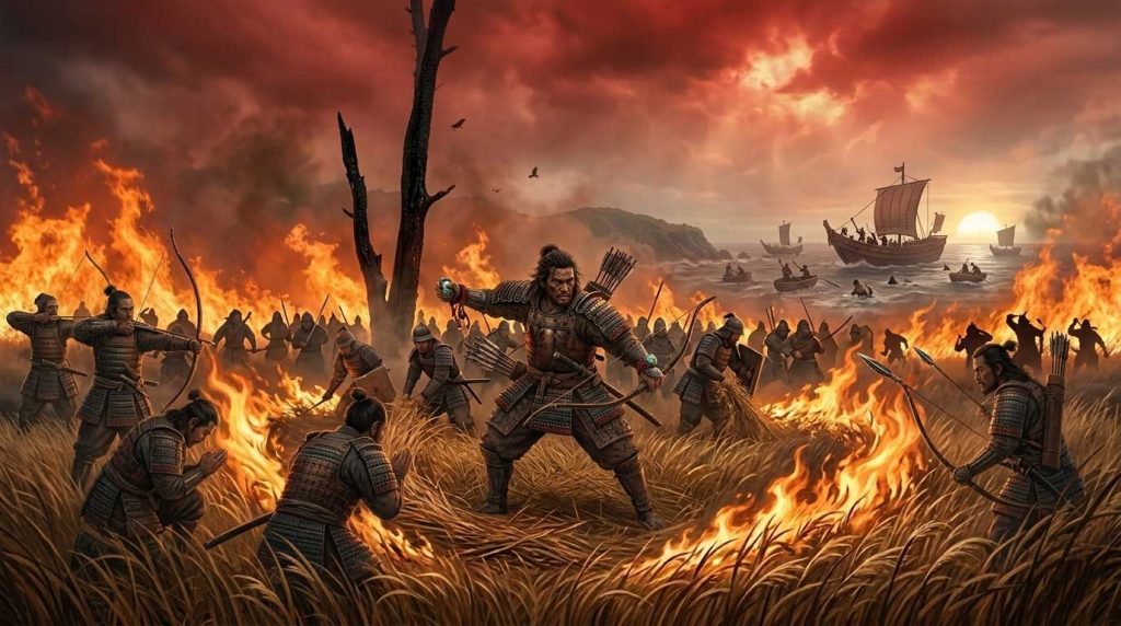 まず、地元の豪族がヤマトタケルを湿地帯へと誘い出し、野火を放ったという展開は、歴史の文脈では「地の利を活かしたゲリラ戦」を意味します。中央から派遣された軍隊に対し、その土地の植生や気象を知り尽くした在地勢力が、自然そのものを兵器として利用したのです。これは、大和朝廷による統一事業が、決して平坦な道のりではなく、各地で凄惨な拒絶反応に遭っていた生々しい記録といえます。