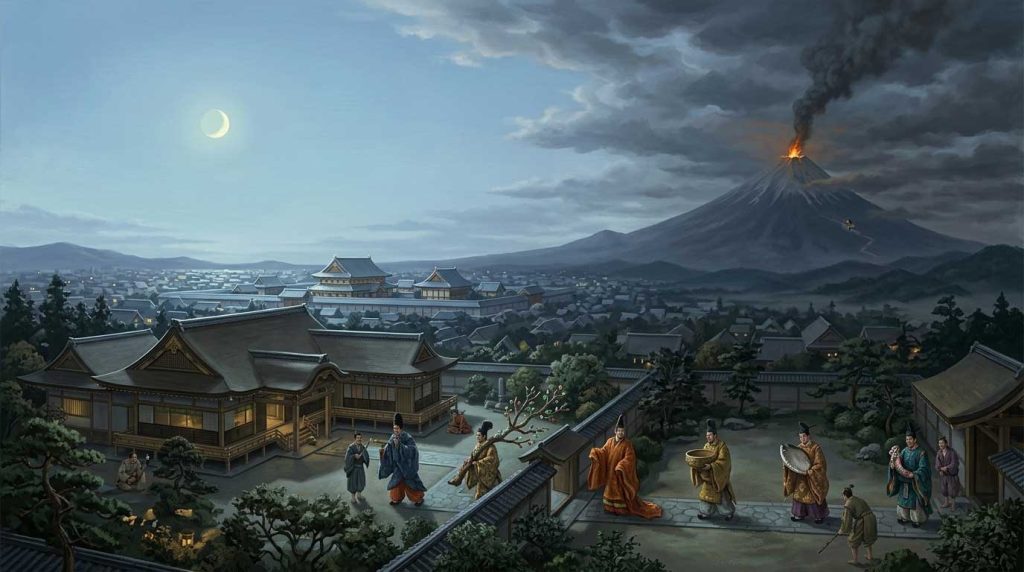 残されたミカドは、「かぐや姫がいないのに、長生きしても仕方がない」と嘆き、その薬を日本で一番高い山の頂上で焼くよう命じました。その山からは今も煙が立ちのぼっており、それが「富士(不死)の山」の由来となったといいます。