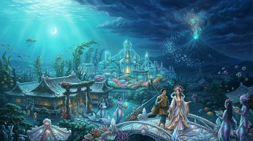 実はその女性は、島子が助けた亀の化身であり、海神の娘・乙姫(おとひめ)だったのです。