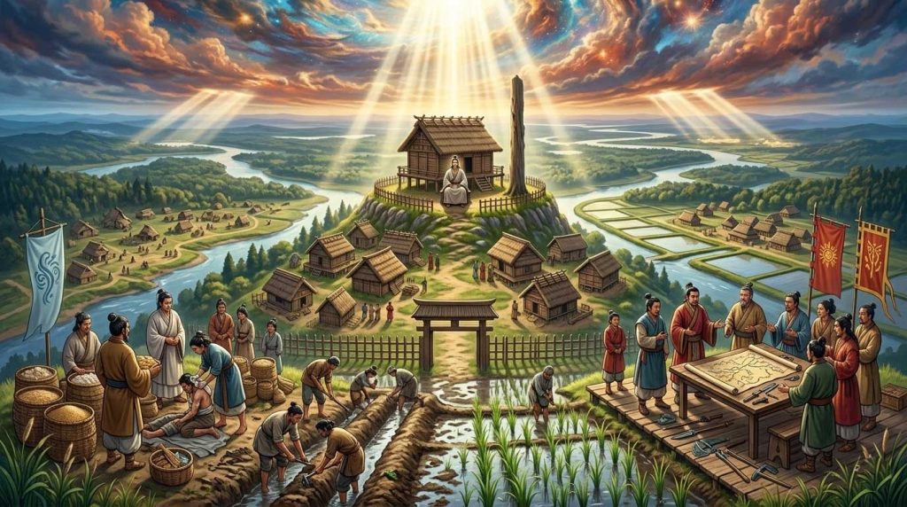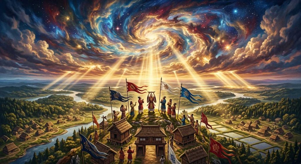 世界の始まりを告げる『天地開闢』の物語は、一見すると超自然的なファンタジーですが、その背後には「古代国家がどのように秩序を形成していったか」という生々しい歴史の力学が鏡のように映し出されています。