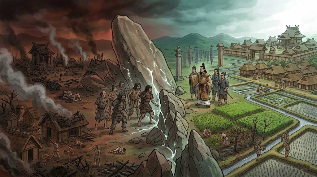 ここで「災厄の神(マガツヒ)」が生まれるのは、急激な改革には必ず歪みや反発が生じるという現実を認めているからです。しかし、すぐさまそれを修正する「直毘神(ナオビ)」が生まれることで、社会が自浄作用を持ち、「法と理性」によって負の連鎖を断ち切る仕組みを構築したことを物語っています。