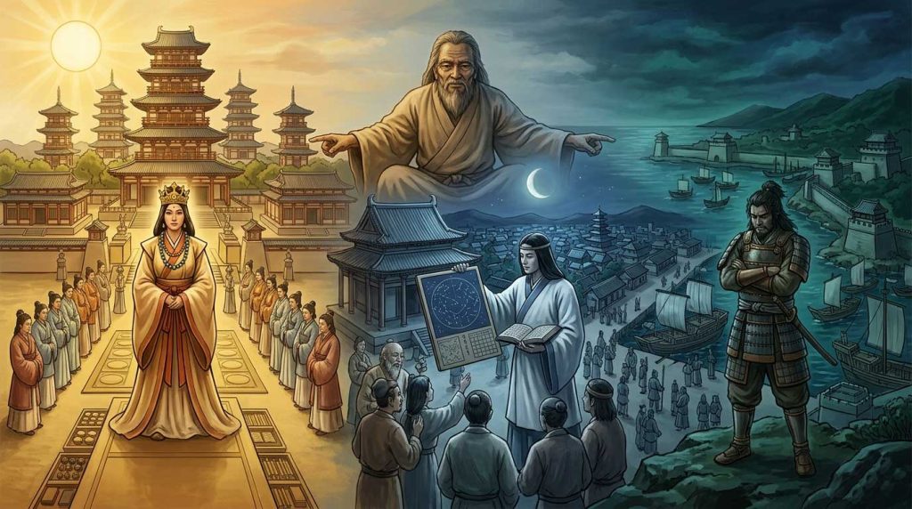『三貴子の誕生』を、天空のドラマから地上に引き戻し、「王権の確立と権力分立」という冷徹な歴史の力学として読み解くと、また別の姿が見えてきます。