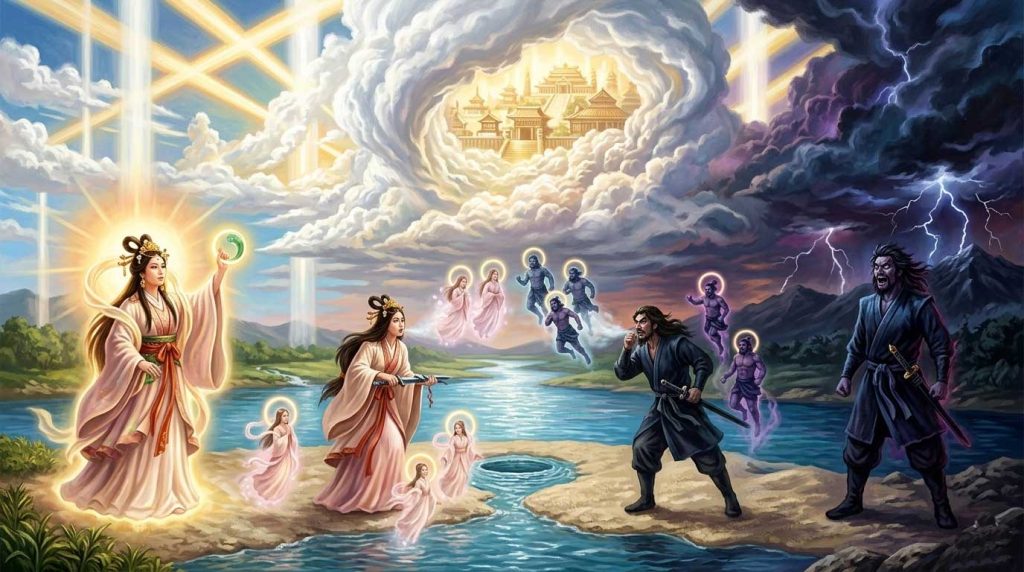 『アマテラスとスサノオの誓約(うけい)』を、神聖なヴェールの向こう側にある「政治闘争と外交交渉」の記録として読み解くと、そこには極めて現実的な権力ゲームの姿が浮かび上がります。