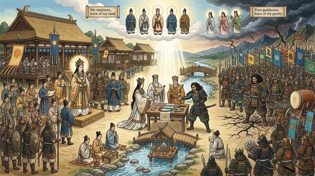 ここで注目すべきは、武力衝突を回避するために選ばれた「誓約(うけい)」という形式です。これは現代で言えば、利害の対立する二勢力が、第三者的な権威や不可抗力(占いや法理)を用いて、互いの妥協点を探る「外交交渉」に相当します。