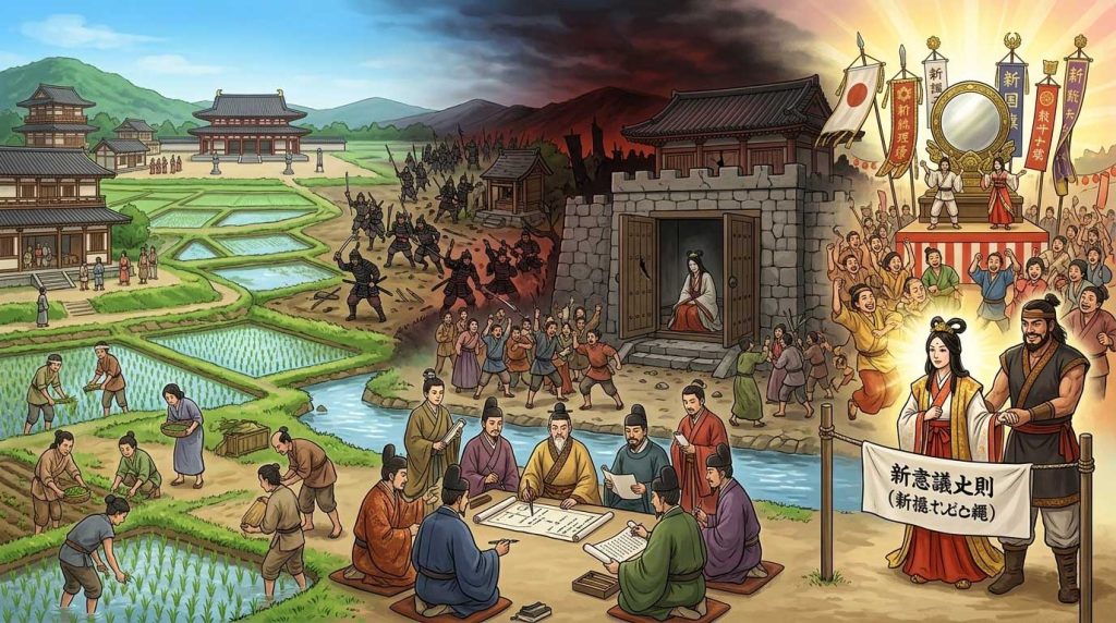 「天の岩戸」という物語を、天空の神話ではなく、実際に生きた人間たちの権力闘争や社会変革の記録として読み解くと、そこには極めて現実的でダイナミックな政治劇が浮かび上がります。