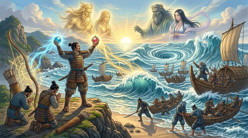 この二つの珠による勝利は、単なる武器の力ではなく、山幸彦が「海の霊力(呪力)」を完全に掌握したことを象徴しています。これによって山幸彦は、荒ぶる海の民を従え、後の天皇へと繋がる王権の基盤を確固たるものにしたのです。