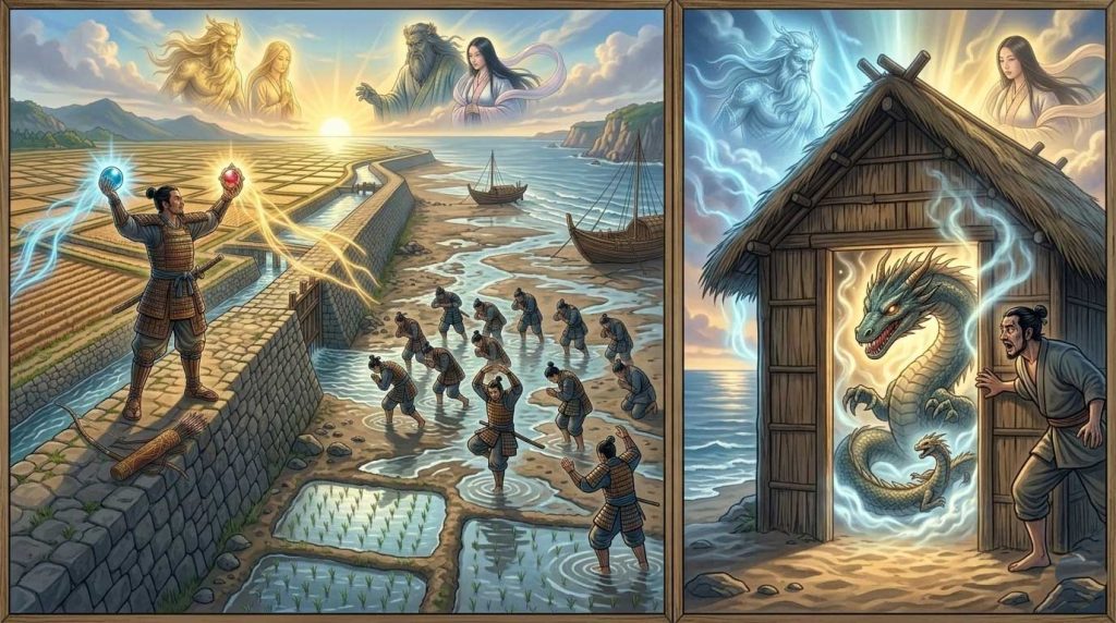 歴史的な視点で見れば、この二つの珠は単なる魔法の道具ではなく、特定の勢力が独占していた「灌漑(かんがい)技術」や「航海・気象の知識」の象徴です。兄の海幸彦が象徴する先住の海洋民族に対し、弟の山幸彦(天孫族)が圧倒的な優位に立てたのは、背後に控える海神の勢力から「水の制御術」を学び取ったからに他なりません。