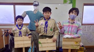 5月の集会では、毎年恒例の畑を耕す予定でしたが、嵐のためプログラムを急遽変更しました。ボーイ隊は、畑に設置するプレート作りに取り組みました。神社の木材置き場から垂木と野木を分けてもらい、各隊ごとのプレートと、それぞれのスカウトの名前入りプレ...
