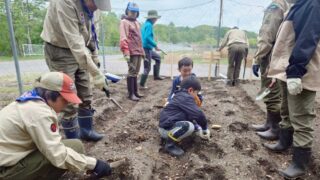 5月の晴れた日、ビーバー、カブ、ボーイのスカウトたちが畑で植え付けを行いました。初めに、各隊の芋畑に4種類のジャガイモを丁寧に植えました。その後、スカウト一人ひとりに約2メートルの畝が割り振られ、それぞれが自宅から持参した苗を大切に植え...