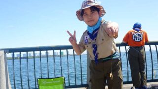 苫小牧港でボーイスカウトの釣り集会が行われました。朝から青空が広がり、風も穏やかで絶好の釣り日和となりました。スカウトたちはそれぞれ自分の釣り竿を手に、防波堤の安全な位置に並んで仕掛けを投げ込みます。最初は期待に胸をふくらませていましたが、...