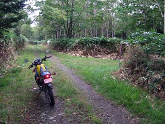 ⑩  起点から27.3km。途中200m位雨が降ると悪路になるのでくれぐれもマフラーを壊さないように。念のためスコップの携行をお薦めする。先には広い駐車場が有る。