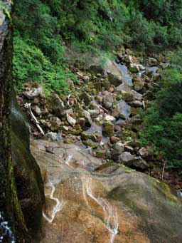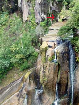 前ページの赤矢印のところから滝下を撮ったものだが、ザイルでの確保がなかったらとても覗き込む勇気はでない。