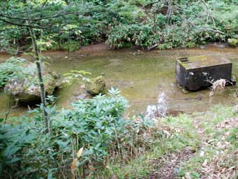 ⑫  2007年9月現在は、駐車場から綺麗な苅分道があり、藪を漕ぐことはない。駐車場から右手に進むと取水口に出る。