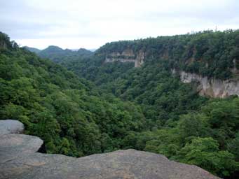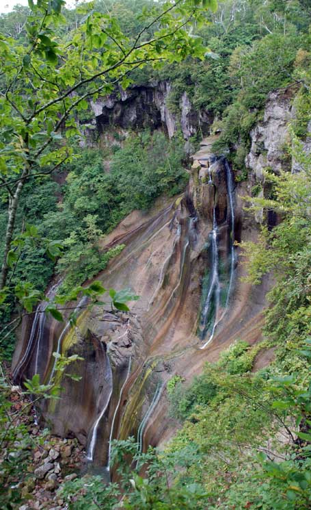 熊の気配を感じながらおそるおそる滝口に進むと、高度感のある風景を官能できる。携行品にザイルを入れておくと更に絶景を楽しめるだろう。ただし、落ちたら命の保証はない。