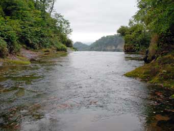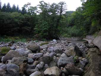 ⑰  駐車場から50m程北に向かうと社台川の河原に出る。ここから2時間ほどで社台滝に着く。