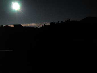 8月23日2時45分の石室からの月夜です。トイレに起きてしまいました。   右の写真は、雲の平からの朝日です。
